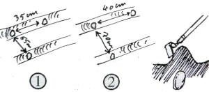 Il faut planter plus serré avec du petit calibre (1) et un peu plus large avec un calibre moyen (2).