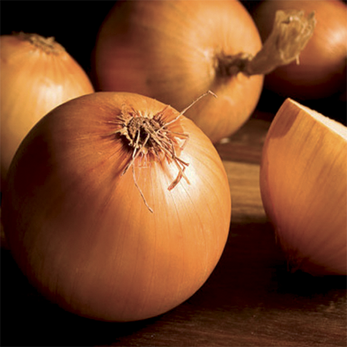 Gros bulbes semi-plats jaune cuivré au goût léger.
