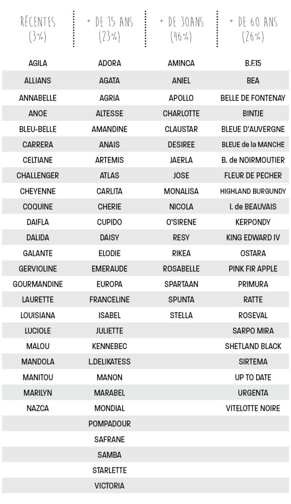 Quel âge ont les variétés de pommes de terre ?